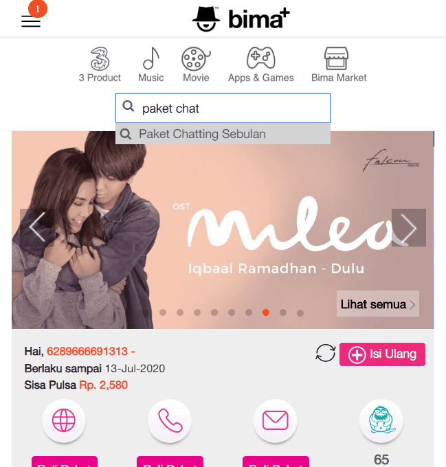 Jika kamu tertarik dengan paket ini, khusus untuk paket chat tri, kamu bisa melakukan pembelian melalui aplikasi atau situs bima plus.